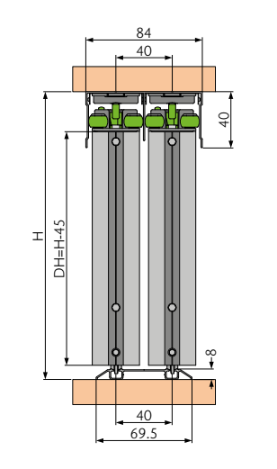 Stumdomų durų sistema yra skirta aliuminio rėmo durims iki 50 kg .